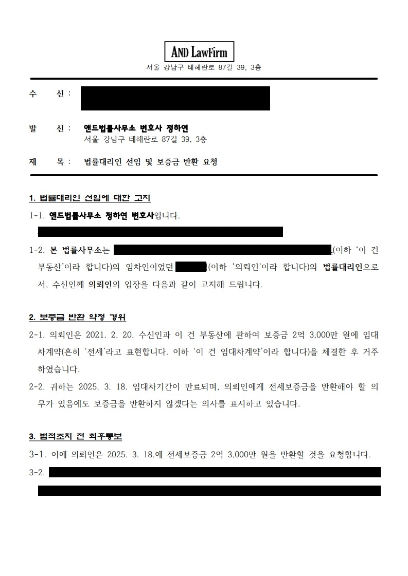 전세 보증금 반환 문제는 단순한 항의나 구두 약속만으로는 해결되지 않는 경우가 많습니다.
