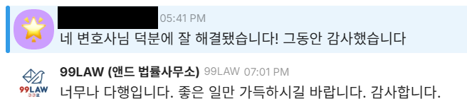 99LAW(앤드 법률사무소)는 이런 상황을 처음 겪는 의뢰인을 위해 상세한 안내 서비스를 제공했고,