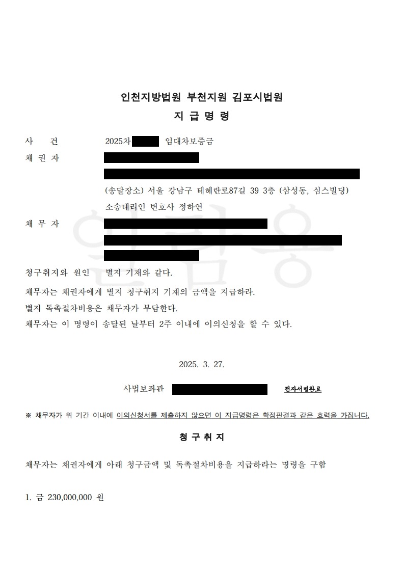 - 2025년 3월 21일 / 지급명령 신청 및 위임장 제출 완료