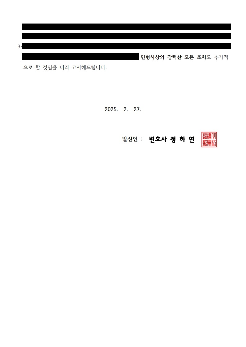 - 2025년 2월 27일 / 의뢰인 요청으로 99LAW 우편 내용증명 재발송