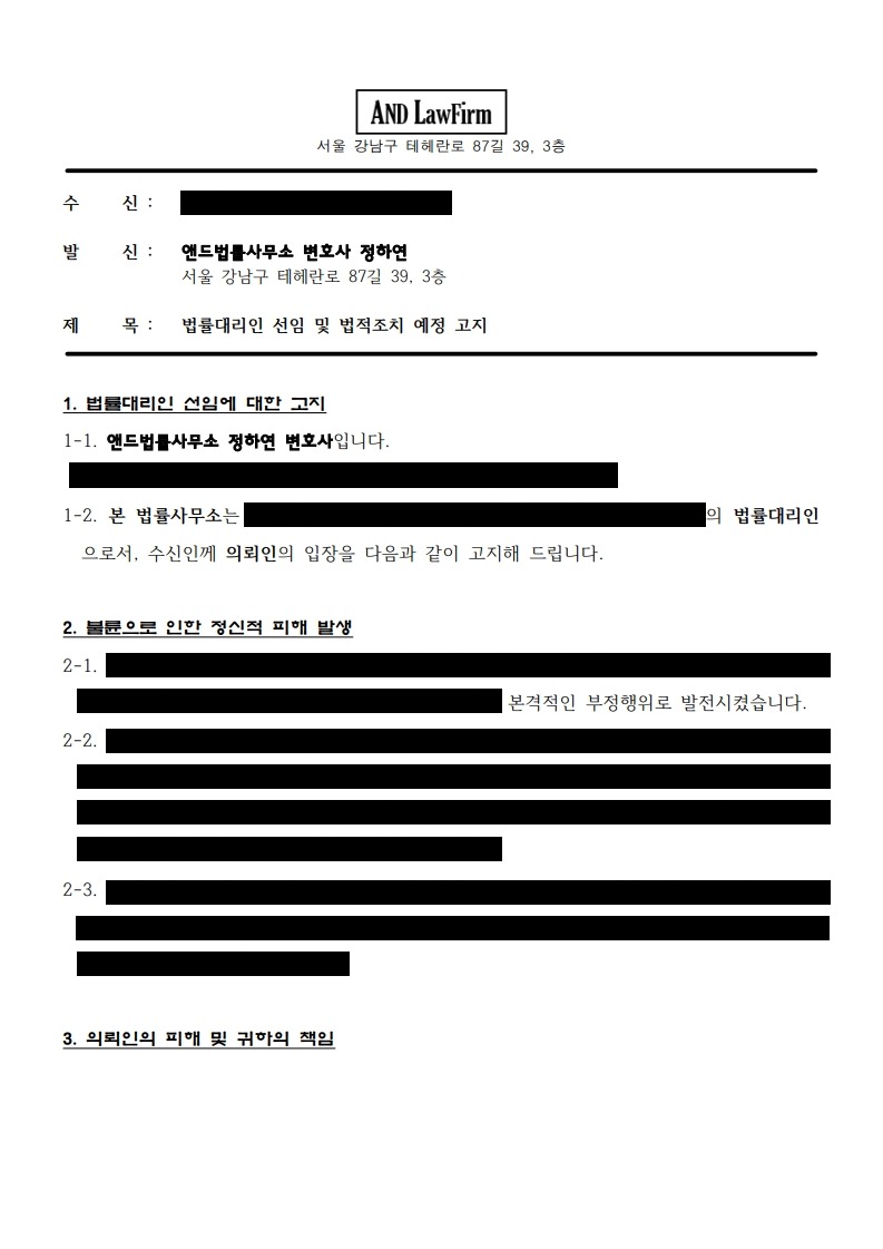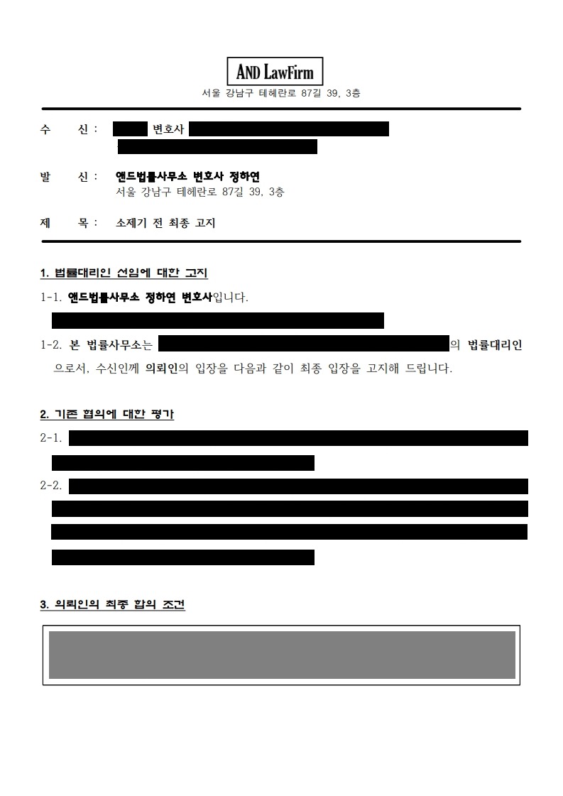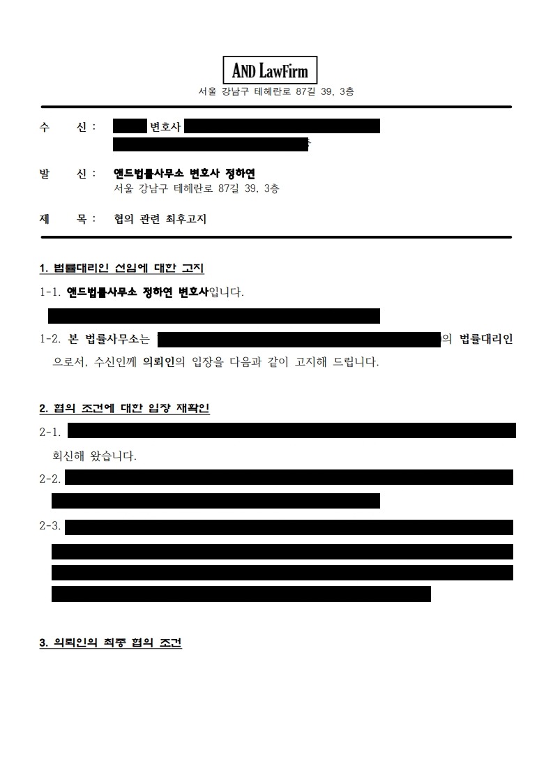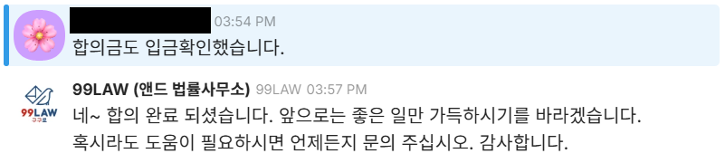 ▲ 99LAW(앤드 법률사무소) 합의를 위한 내용증명 발송(3회) ▲