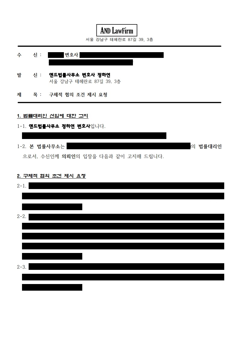 - 제시된 협의 조건에 대한 입장 및 의뢰인의 최종 협의 조건 전달