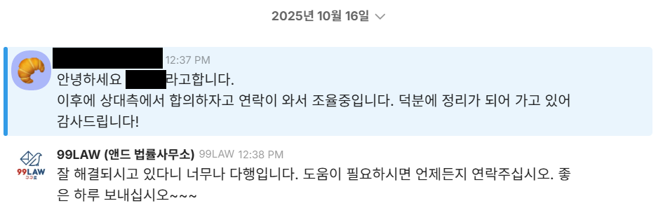 - 2025년 10월 16일 / 의뢰인, 웹소설 계약 미이행 업체와 원만하게 합의 완료